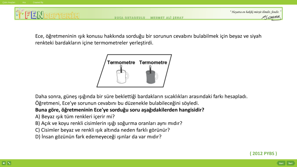 Işığın soğurulması Mehmet Ali ŞENAY 3 Mayıs 2020 5.Ünite- Işığın Madde ile Etkileşimi Yorumlar 418 Görüntüleme Görüntülenme: 622 Paylaş Facebook Twitter